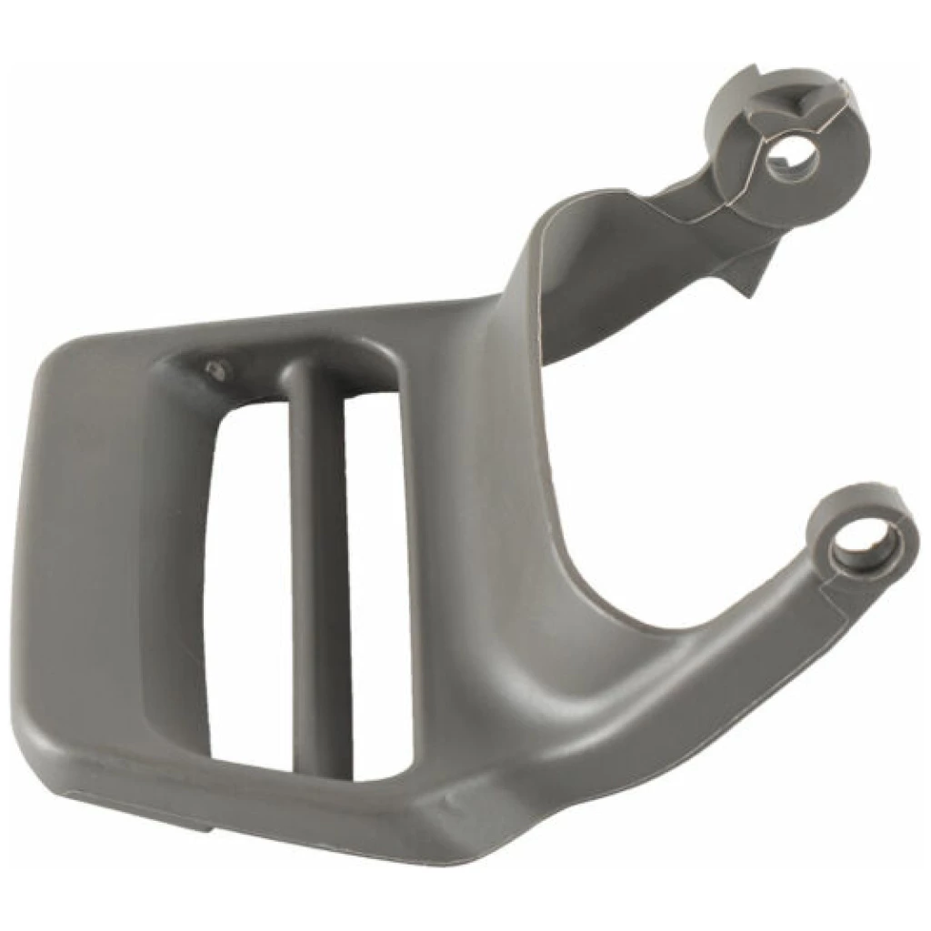 This hand guard is a replacement part sourced directly from the original equipment manufacturer. It is commonly used in chainsaws crafted by Husqvarna. This hand guard should be replaced if it is broken or damaged. A screwdriver is needed to replace this part. A wrench is recommended but not required. This hand guard is sold individually.