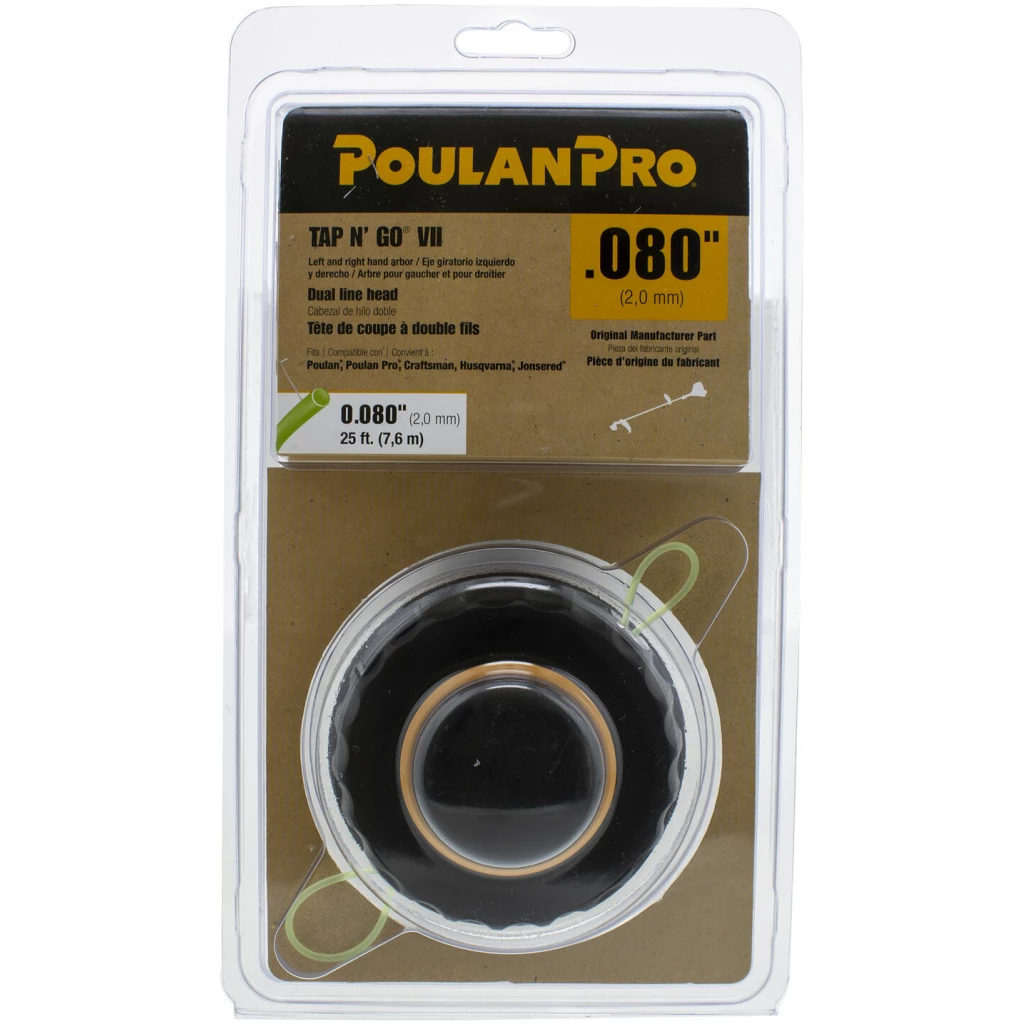 This manufacturer approved replacement trimmer head is designed for use with Poulan string trimmers. This trimmer head is designed to quickly and efficiently cut through grass. This item includes the bump head knob, spool with string, cover and metal eyelets. This cutting head is sold individually.