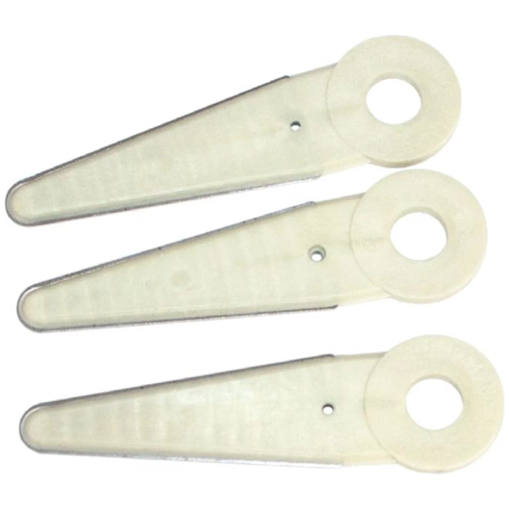 Fits Allen Clean Cut hover mower, Grasscraft (newer models), Hoffco, Husky Tri-King, Stihl, Weed Blaster, WeedMaster trimmer heads & hovering lawnmowers. Metal edge insert molded into the blade. Cutting life of the blade extended approximately 100 times longer. Fits #207-2447 trimmer head.